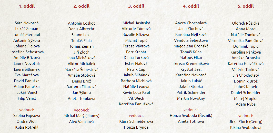 Oddíly & štáb